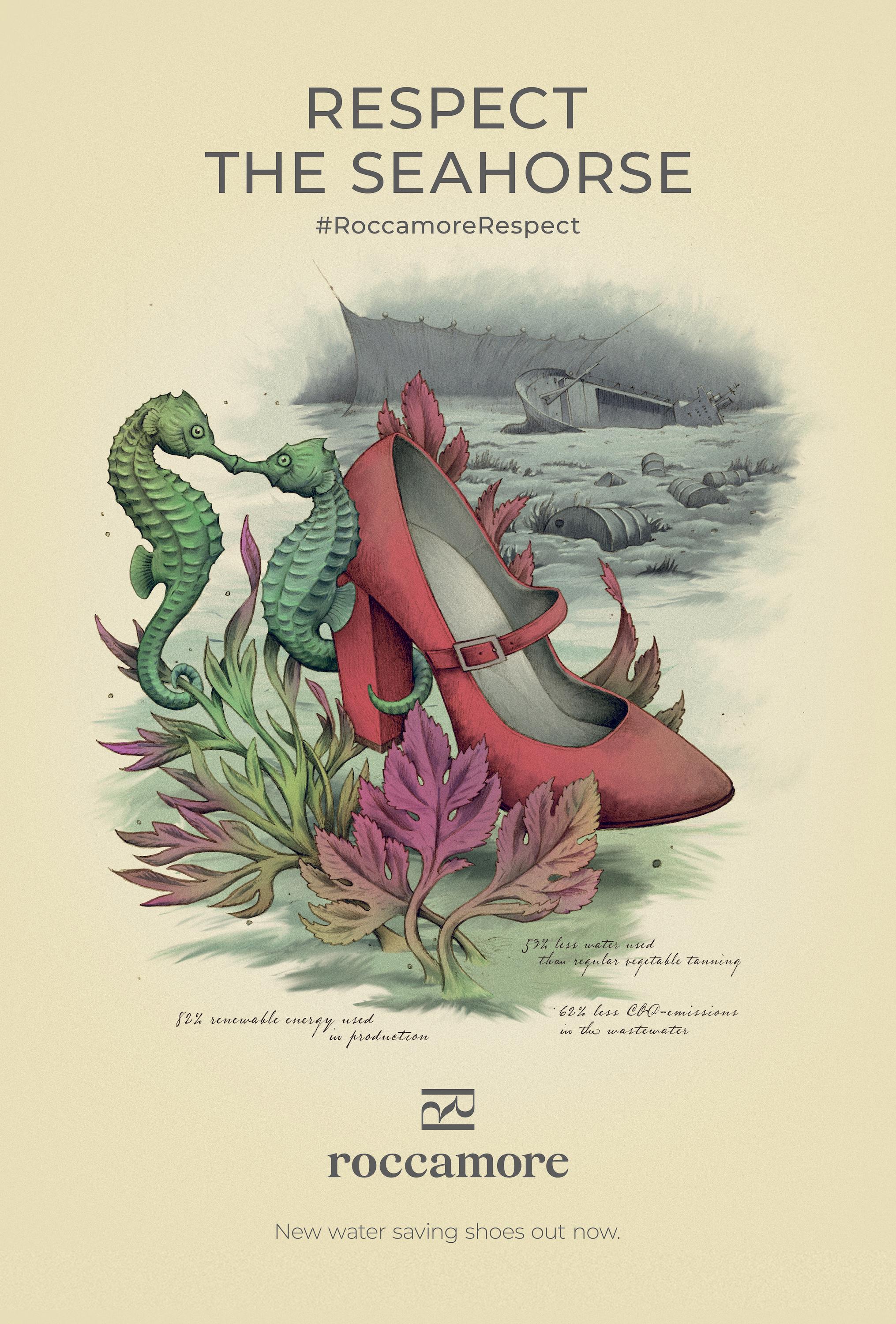 為了宣傳Roccamore的系列時尚鞋,并講述它們如何為我們的星球和野生動物做出貢獻,設計師以古典自然主義插圖為靈感,制作了一系列手工制作的平面廣告。