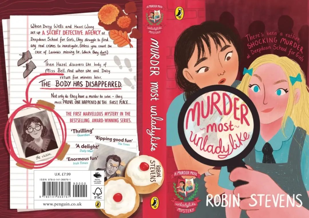 簡介:我的設(shè)計(jì)讓讀者直接投入到行動(dòng)中,并立即將他們與Hazel和Daisy之間的密切關(guān)系聯(lián)系起來。我將標(biāo)題放放大鏡中,從1930年代的福爾摩斯海報(bào)中獲得了背景的靈感,為原本俏皮的插畫增添險(xiǎn)惡的底色。我設(shè)計(jì)的封底就好像是Hazel案例筆記中的一頁,旁邊是她自己和Daisy的面包。